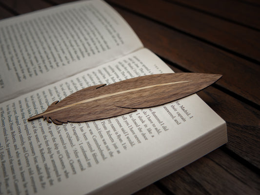Houten Boekenlegger | Veer | Eik & Noten